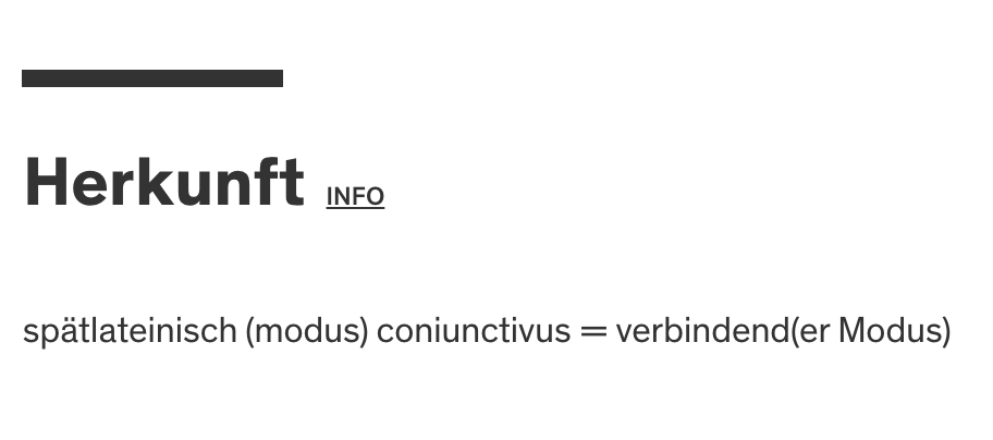 Konjunktiv라는 말의 어원도 라틴어로 '연결, 접속'을 의미하는 'coniunctivus'에서 유래했다고 합니다.
