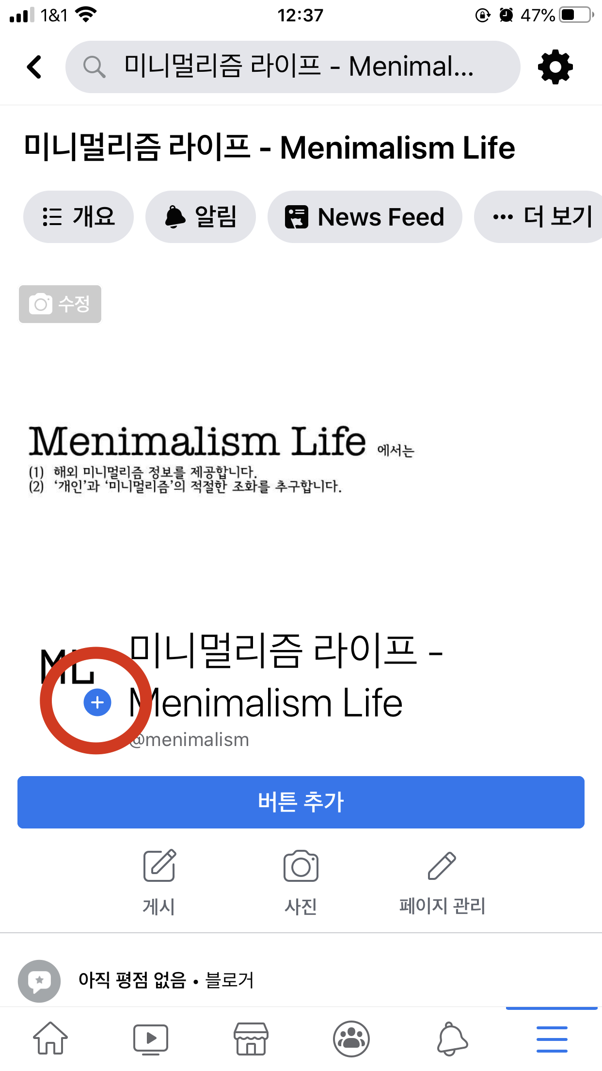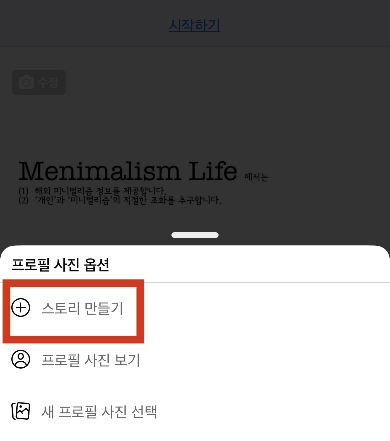 두 번째 방법은 프로필 사진 옆의 파란색 플러스 버튼을 누르는 것이다. 프로필 사진 옆의 파란색 + 버튼을 누르면 아래와 같이 '스토리 만들기', '프로필 사진 보기', '새 프로필 사진 선택'이라는 서브 메뉴가 등장한다. 여기서 스토리 만들기를 누르면 된다. 페이스북 앱에서도, 페이스북 페이지 관리자 앱에서도 모두 사용 가능하다. 페이스북 앱에서 하는 것과 페이스북 페이지 관리자 앱에서 올리는 것에 작은 차이가 있다. 페이스북 앱으로 올릴 경우 페이지 뉴스피드에는 동시에 올리지 못하고 바로 스토리에만 올라가게 된다.