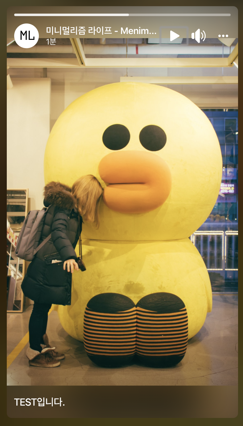 하지만 웹사이트로 올릴 경우 모바일에서 올리는 것과 같은 기능을 모두 활용하긴 어려운 듯 하다. 테스트로 간단한 세로형 사진과 텍스트를 넣어보았는데, 아래 우측 이미지처럼 텍스트가 사진 하단에 들어가는 것을 볼 수 있었다. 스토리를 잘 활용하기 위해서는 웹사이트보다는 모바일에서 눈에 잘 띄도록 텍스트를 추가하는 것이 필요해 보인다.