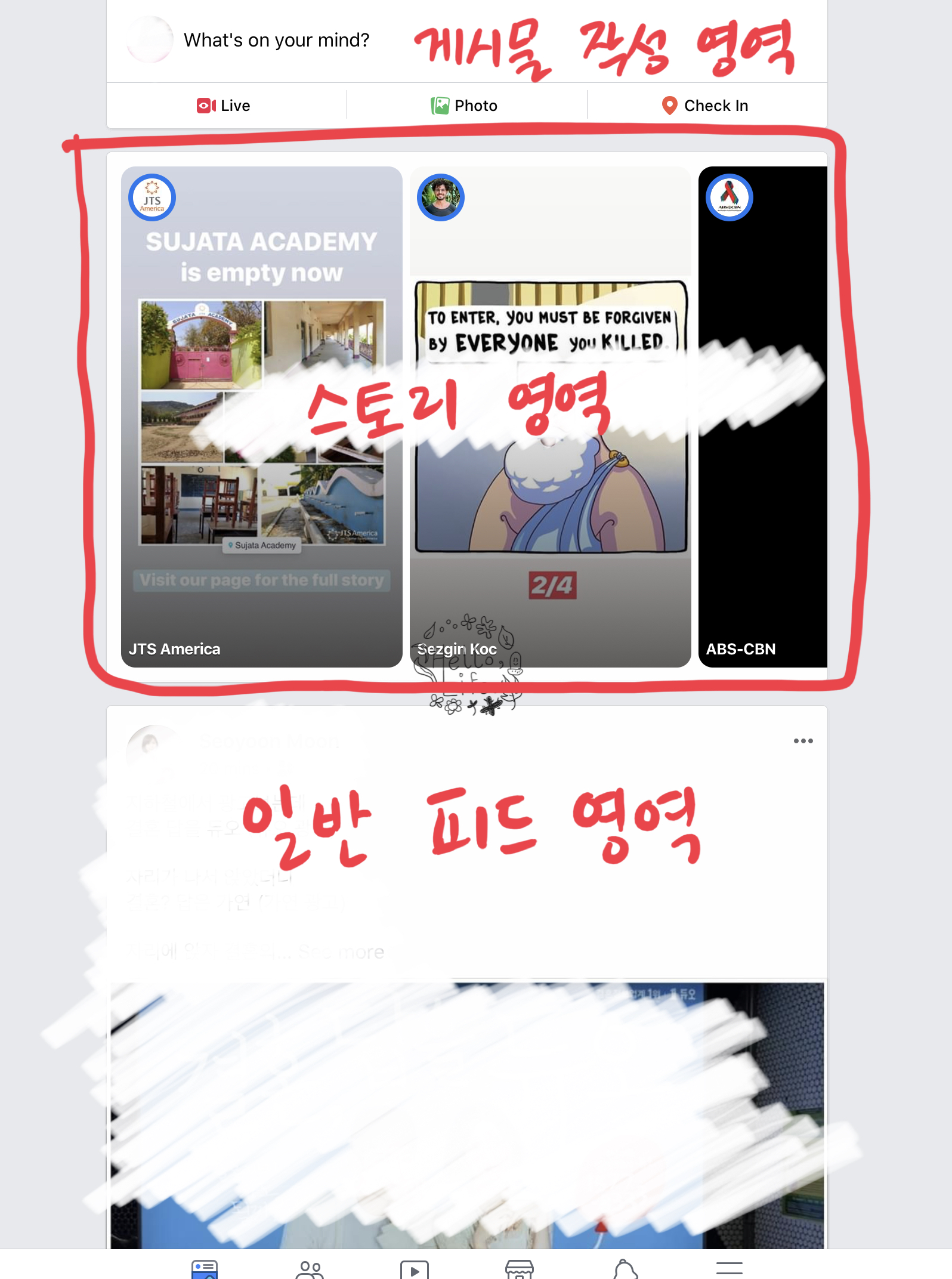 우선 페이스북 페이지의 스토리에 대해서 간단하게 설명을 하자면, 기본 시스템 자체는 인스타그램 스토리와 똑같다. 텍스트, 사진, 영상 등을 올리면 24시간이 지나면 사라진다. 인스타그램보다 페이스북 스토리의 장점이 있다면, 인스타그램은 스토리 영역에 게시자의 프로필 사진만 보여주는 반면, 페이스북 스토리는 스토리에 올린 이미지 자체를 미리보기로 보여준다. 그러니까 이미 누군가가 자신의 페이스북 피드 영역에 접속했을 때 내 스토리가 가장 최신으로 떠있다면, 내 페이지를 팔로우하는 사람들에게는 1차적으로 무조건 노출이 된다고 볼 수 있다. 게다가 예전에는 페이스북 피드 영역에 접속하면 내 게시물 작성 영역 다음으로 페이스북 친구들의 게시물이 바로 보였다면, 지금은 그 사이에 '스토리' 영역이 들어와 있다. 게시물 피드는 다른 게시물이 하나만 올라와도 최상단에서 밀리지만, 스토리는 1개 반까지는 최상단에서 버틸 수 있다. 대신 유저가 한 번이라도 클릭해서 스토리를 확인했으면 이미 읽힌 스토리는 제일 뒤로 밀려난다.