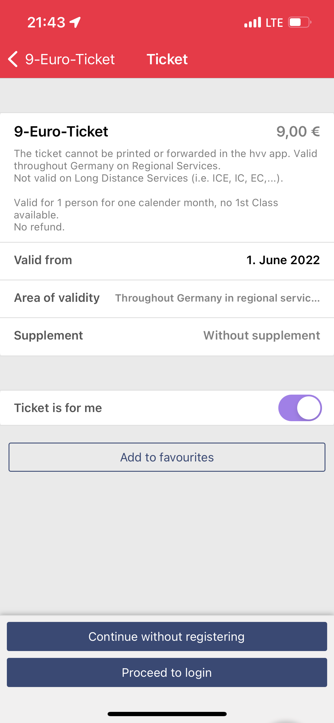 6월-8월 중에 적용되며, 9유로 티켓을 한 번 살 때 1달의 기한이 주어진다.